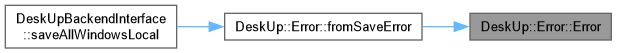 The Error class extends std::runtime_error to attach structured metadata to exceptions thrown across DeskUp subsystems. Each error carries: